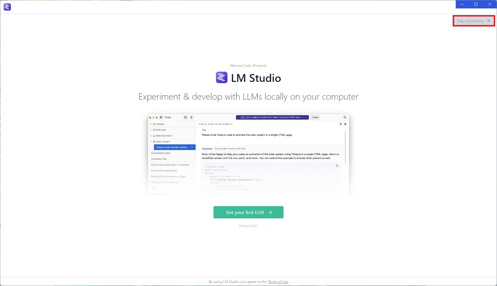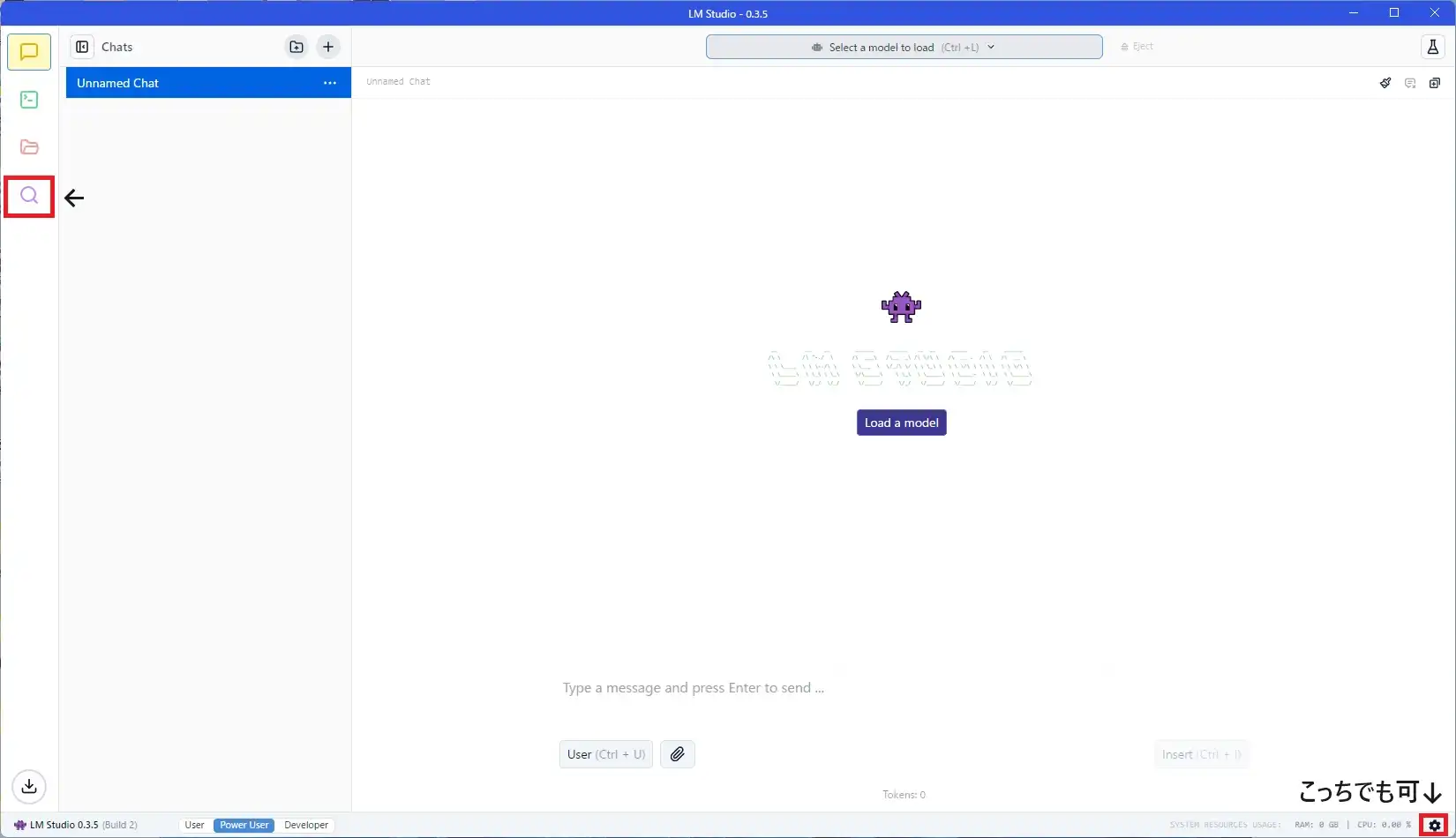 保存したインストーラーを実行すれば、自動でCドライブ内にLM Studioがインストールされたのち、ソフトが立ち上がります。
